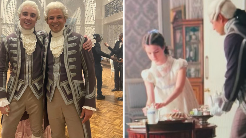 O ator também apareceu ao lado de Oli Higginson, que interpreta John, outro funcionário da casa. A presença constante dos empregados ajuda a construir o contraste social que atravessa o romance central da temporada.