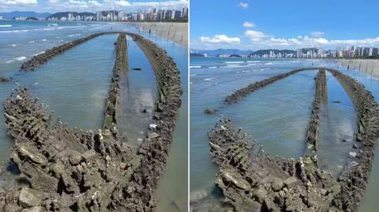 A Prefeitura de Santos confirmou que o recuo da maré durante o último fim de semana foi o responsável por trazer o “navio fantasma” de volta à tona. Embora o fenômeno não seja raro, o aparecimento dos destroços sempre desperta fascínio e rende registros nas redes sociais.