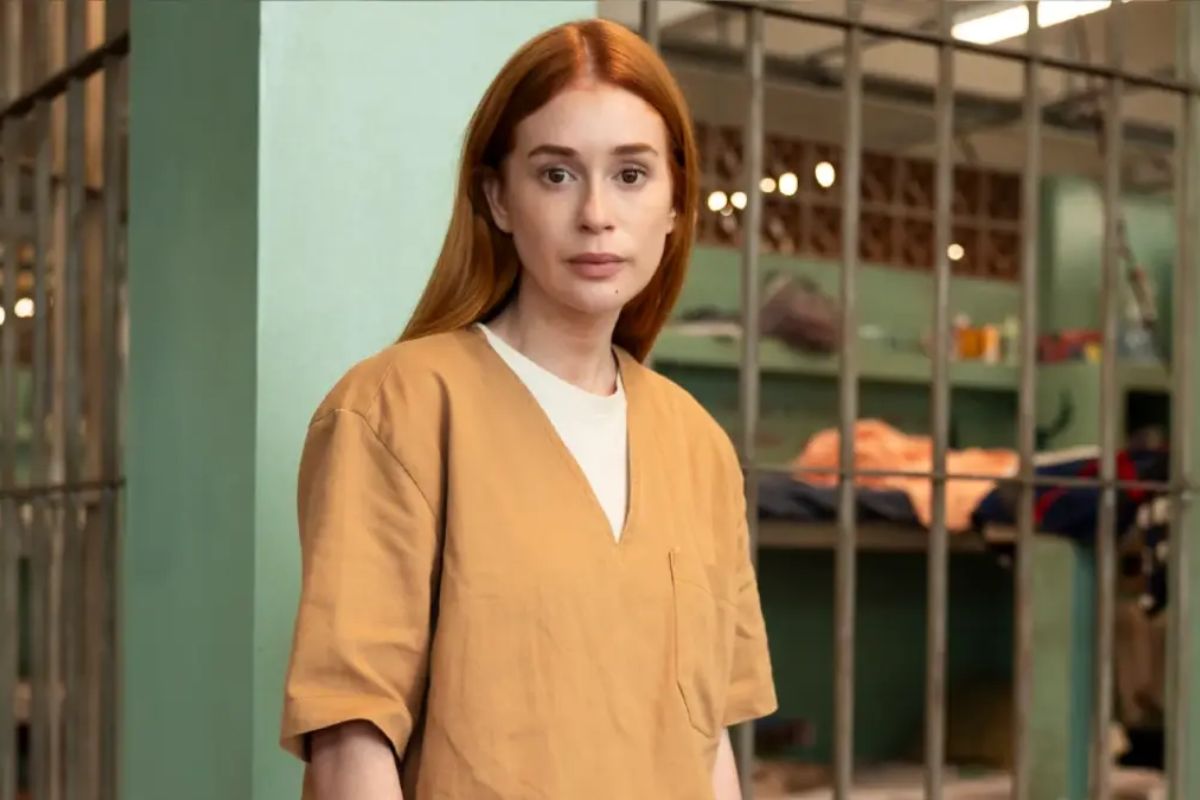 Em Tremembé, Marina Ruy Barbosa dá vida a Suzane von Richthofen, ao lado de Carol Garcia (Elize Matsunaga) e Letícia Rodrigues (Sandrão).