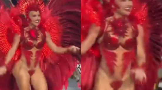 O figurino, que incluía um costeiro de cerca de 12 quilos, precisou ser parcialmente removido após causar dores. No meio da apresentação, outro problema chamou atenção: o tapa-sexo começou a se soltar enquanto ela atravessava a avenida.