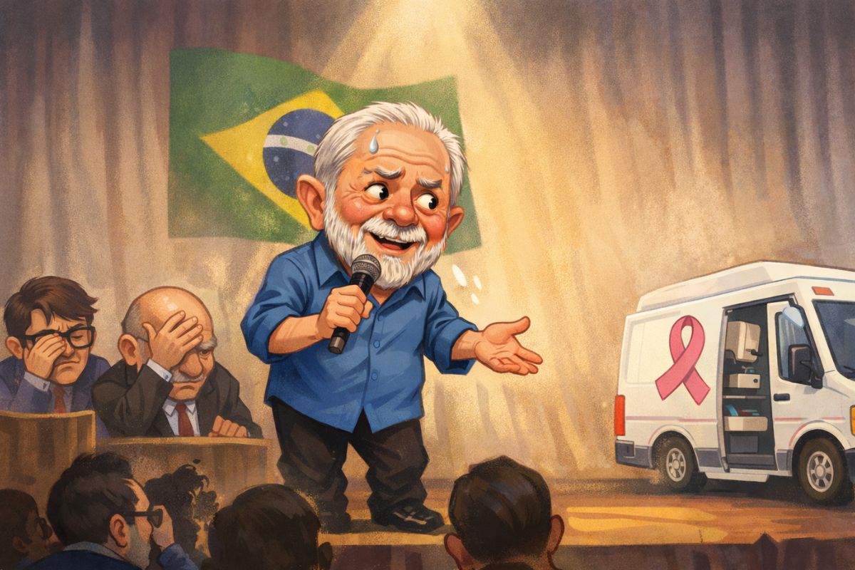 No mesmo evento, Lula resolveu transformar a Carreta da Saúde em palanque pedagógico e, com seu didatismo direto, afirmou que muitos homens evitam o exame de próstata por vergonha do toque retal.