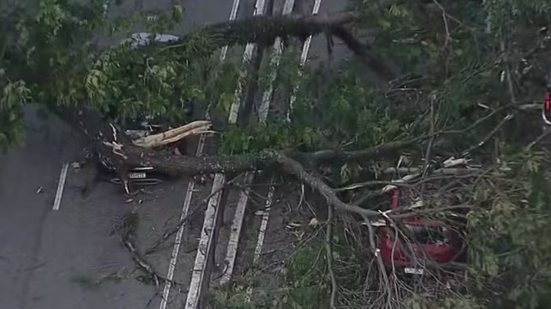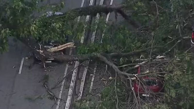 Uma árvore de grande porte caiu sobre dois carros e um ônibus na tarde desta terça-feira (3). A Av. Ibirapuera, na zona sul de São Paulo, foi interditada.