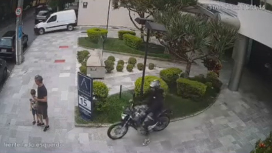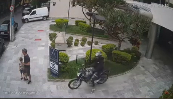 Um assalto ocorreu em Perdizes, São Paulo, onde um pai e seu filho foram abordados por um motociclista que roubou o celular do homem enquanto aguardavam um carro por aplicativo.