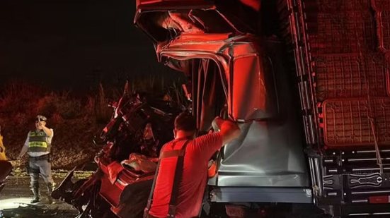 Um motorista de 40 anos ficou preso às ferragens após uma colisão traseira entre um caminhão e uma carreta na Rodovia Governador Adhemar Pereira de Barros (SP-340), em Casa Branca (SP), na noite da última quarta-feira (29).