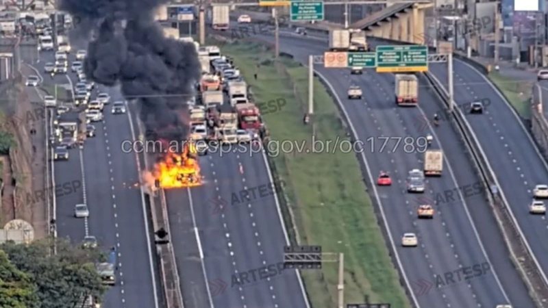 O veículo pegou fogo no quilômetro 107 da via, na altura do município de Sumaré, no interior de São Paulo, após um vazamento de óleo diesel que acabou desencadeando o incêndio, segundo o Metrópoles.