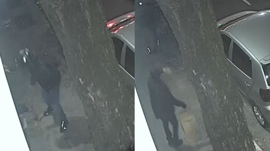 Câmeras de segurança registraram o momento em que o casal caminhava pela Rua Gomes de Carvalho quando foi abordado por um criminoso em uma motocicleta.