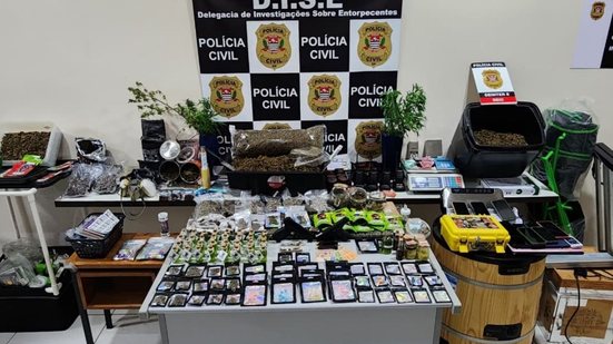 Além da maconha, foram apreendidas porções de cocaína e drogas sintéticas. Os policiais também encontraram insumos químicos, fertilizantes, balanças de precisão, embalagens, etiquetas, ferramentas, câmeras de monitoramento, rádio transmissor, máquina de cartão, cadernos com anotações do tráfico, um tablet e 13 celulares.