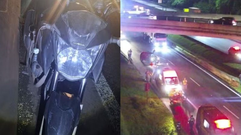 O motociclista trafegava pelo viaduto quando perdeu o controle, bateu contra a mureta e caiu na pista sul da rodovia.