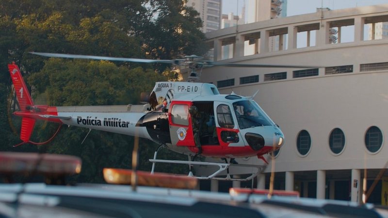 O apoio aéreo permitiu acompanhar a movimentação na região e orientar as equipes em solo durante a busca pelo suspeito.
