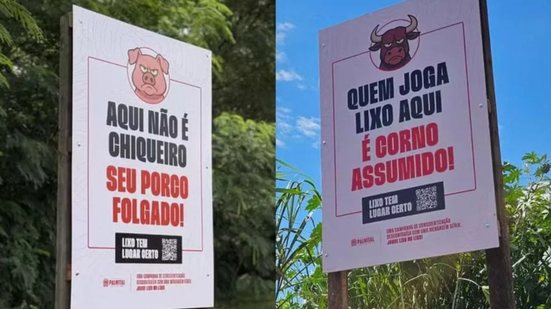 Em três pontos da cidade, no interior paulista, placas com mensagens como “Quem joga lixo aqui é corno assumido” e “Aqui não é chiqueiro, seu porco folgado” chamaram a atenção nas redes sociais e repercutiram além dos limites do município.