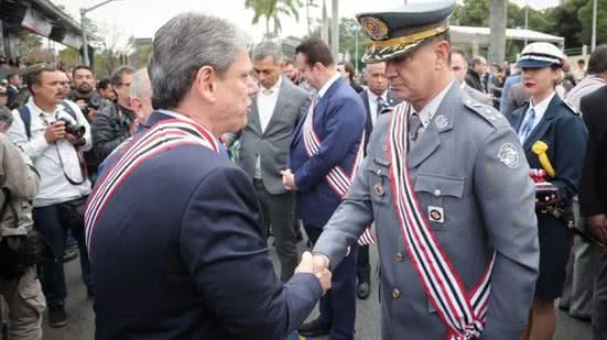 A troca de comando da PM foi oficializada pelo governador Tarcísio de Freitas (Republicanos) na quinta-feira (16). Coutinho foi para a reserva e o novo comandante da PM passou a ser a coronel Glauce Anselmo Cavalli, primeira mulher a ocupar o cargo.