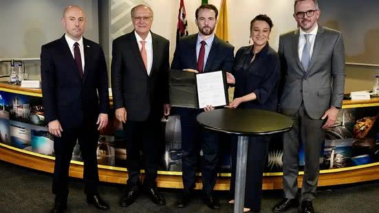 Com a participação do vice-presidente Geraldo Alckmin e dos ministros da Fazenda, Dario Durigan, e de Portos e Aeroportos, Tomé Franca, foi formalizada nesta segunda-feira (13) a operação de crédito do Banco do Brasil com o estado de São Paulo que garantiu R$ 2,57 bilhões pra as obras do Túnel Imerso Santos-Guarujá.