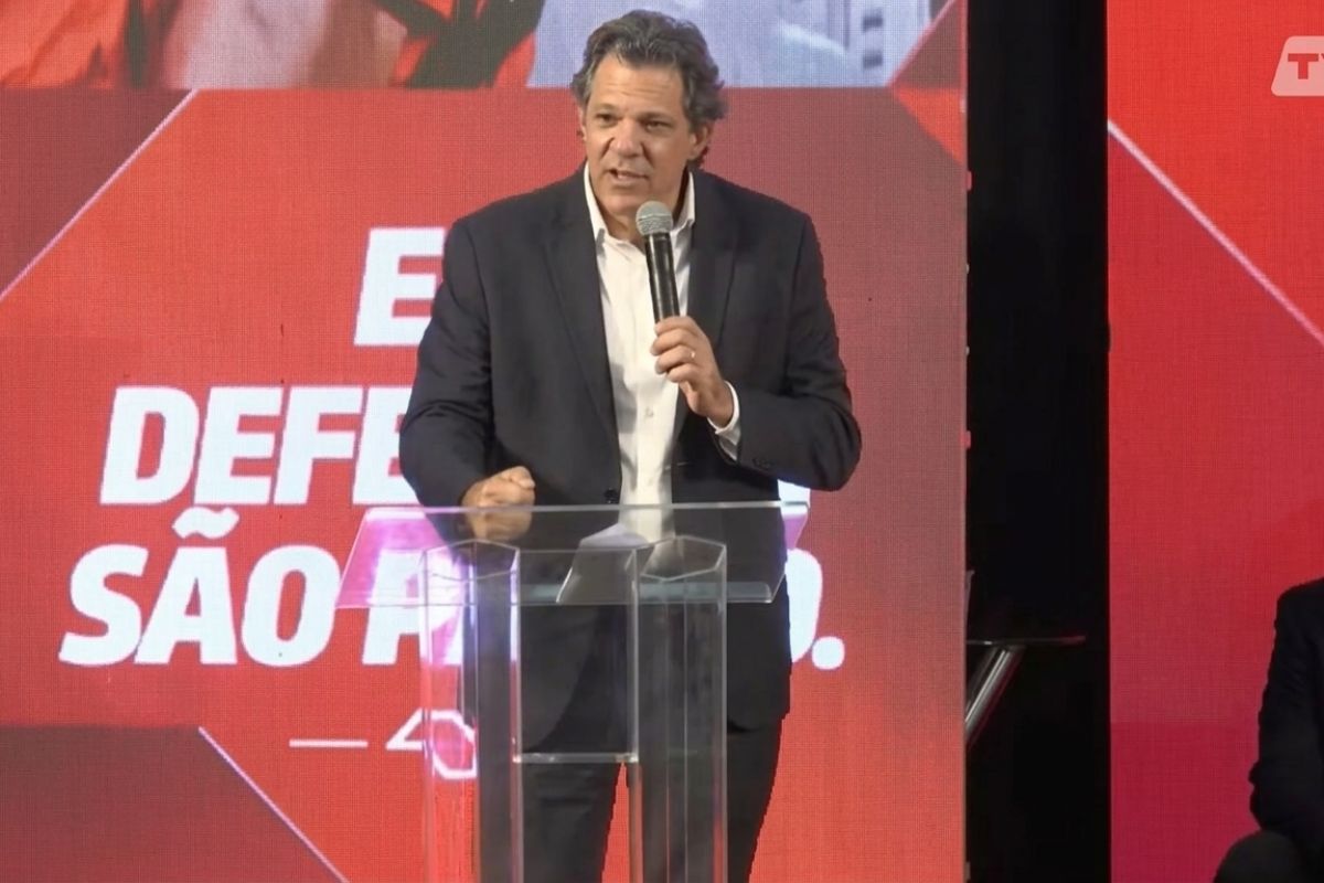 Haddad deu tom nacional à fala ao reforçar apoio à reeleição de Lula. Segundo ele, o país precisa reafirmar valores como equilíbrio, combate à fome e preservação ambiental.