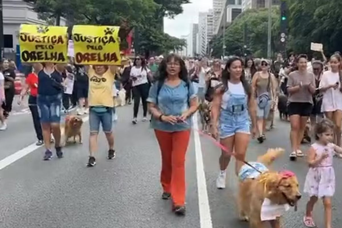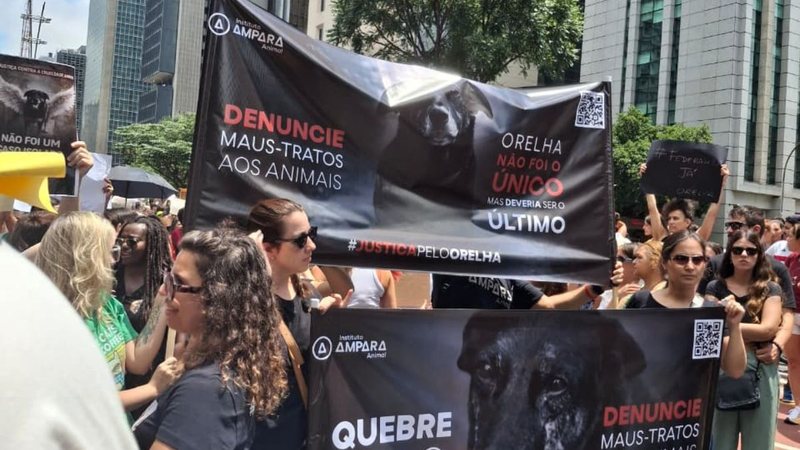 Defensores da causa animal realizaram, na manhã deste domingo (1º), um protesto na Avenida Paulista, em São Paulo, para exigir Justiça pela morte do cão comunitário Orelha, vítima de agressões em Florianópolis, Santa Catarina.