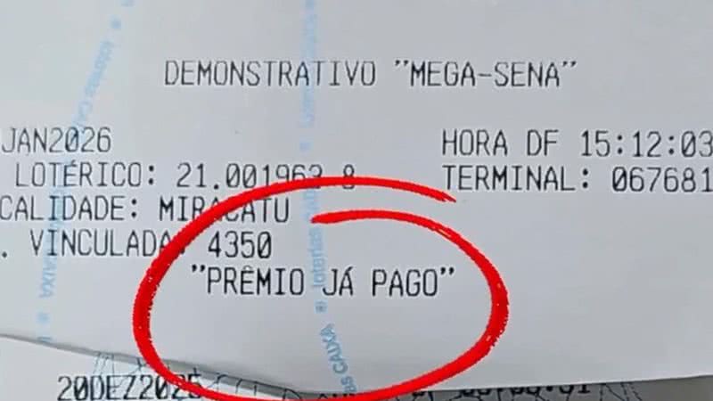 De acordo com Renato, a tentativa de saque ocorreu na última segunda feira, dia 20, em uma casa lotérica localizada em Miracatu, no interior de São Paulo. Ao apresentar o bilhete, ele foi informado pela atendente de que o prêmio já constava como pago.