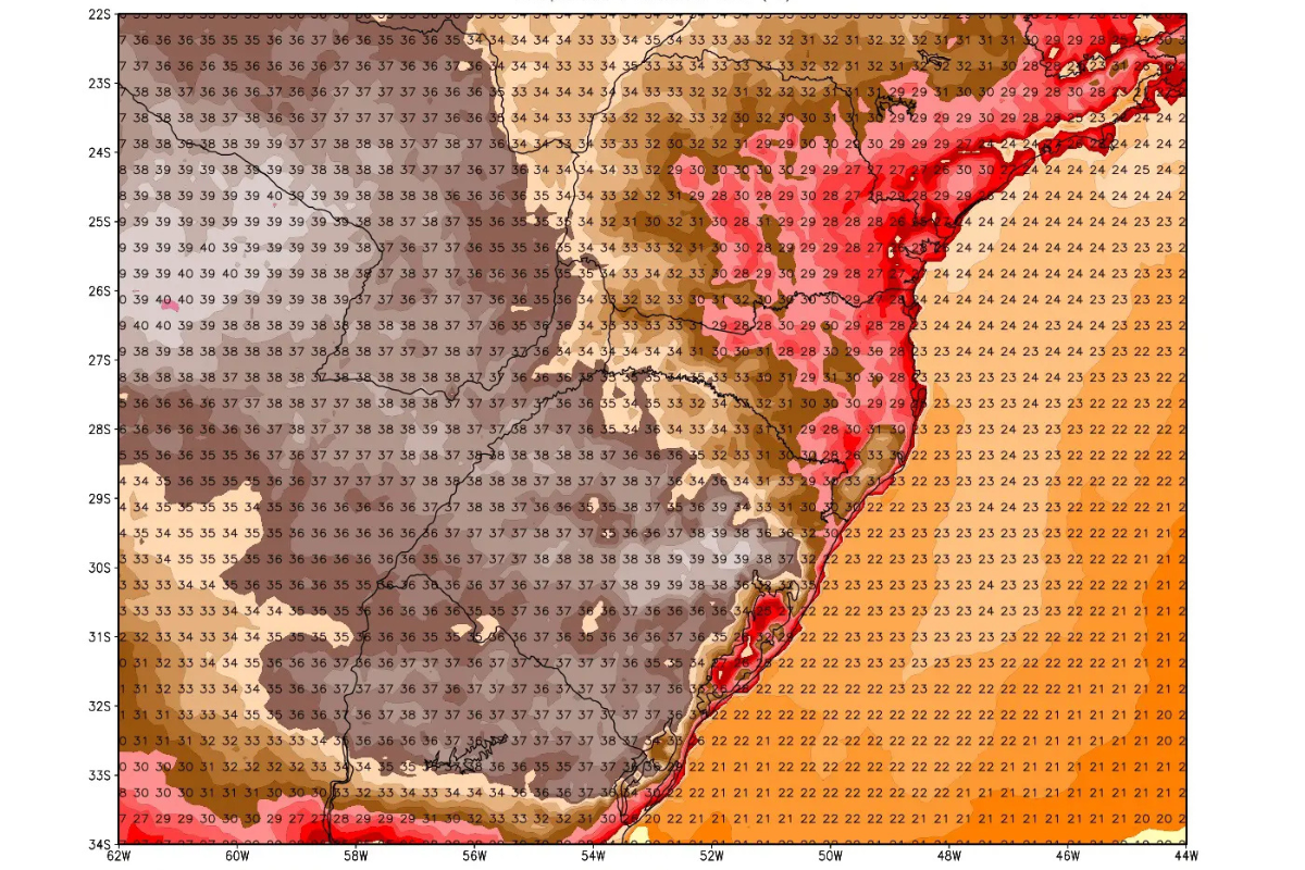 O sábado (6) deve ser o dia mais crítico, com temperaturas de 35°C a 38°C na maior parte do estado e possibilidade de 38°C a 40°C no Noroeste, Campanha, Vales, Grande Porto Alegre e parte do Centro. Há chance de marcas acima de 40°C em áreas isoladas.